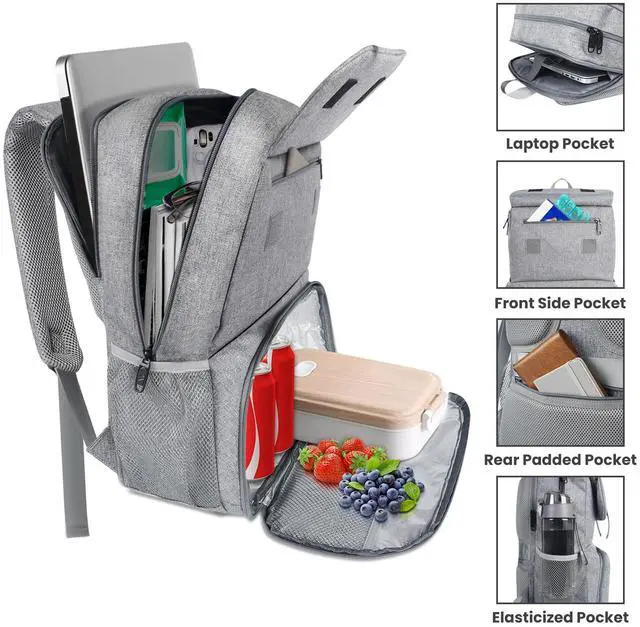 MATEIN Lunch Bags for Women, Cooler Lunchbox Insulated Work Backpack with USB Charging Port, Water Resistant Travel Computer Bag College Daypack Fits 15.6 Inch Laptop Friendship Gifts for Women, Grey