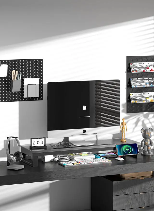 Sturdy and StableThe monitor riser is made of a 27.55*8.66 inch metal plate and ABS premium desk leg modules, with a maximum weight capacity of 110 lbs, providing stable support for various items.