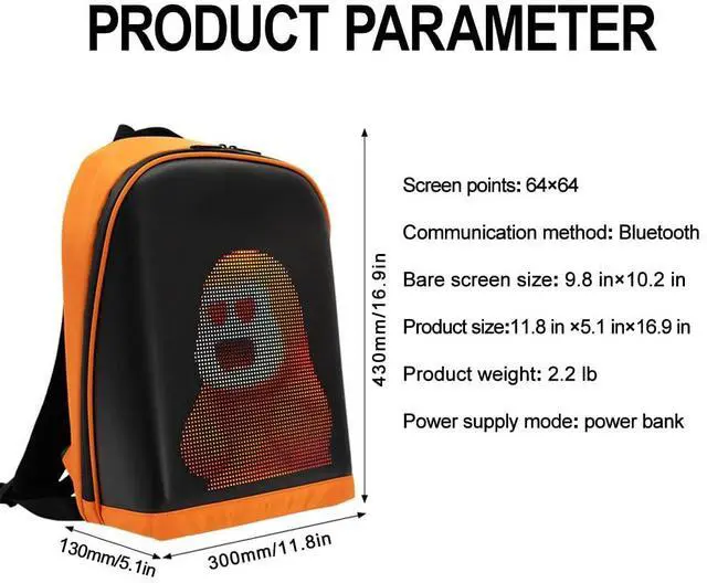 Innovative Customizable Backpack:The LED color screen customizable Backpack is more than a travel bag. With an easy-to-use app, you can customize the LED screen to display texts, images, and Glfs