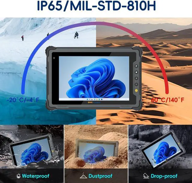 [ Intel N5100 CPU, 8GB RAM+128GB ROM/512GB TF ] - The ONERugged heavy duty tablet is equipped with a pre-installed Windows 11 Pro OS and adopts a 2.8GHz high-speed Jasper Lake N5100 processor, delivering stable and efficient performance even while multitasking. With 8GB RAM+128GB ROM and 512GB TF card expandable storage space, you'll have ample space for storing documents, videos and apps and processing large software applications