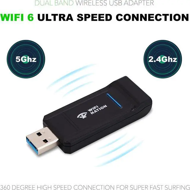 STRONG & STABLE CONNECTION: WiFi Nation WN-H6 is a 802.11Ax USB Wireless adapter. The dual band high gain antennas (with an inbuilt rotating antenna) help you connect, even when the signal is weak. This USB wifi dongle offers 8K streaming without any issues and a transfer rate of 1800Mbps.