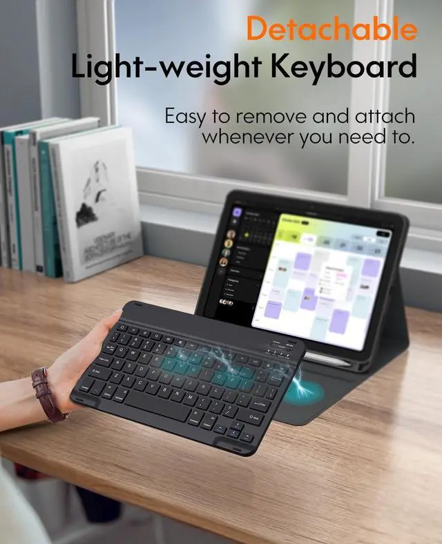 DETACHABLE MAGNETIC KEYBOARD Air 5th Keyboard Case comes with Detachable Wireless magnetic keyboard can let you switch back and forth between a lightweight laptop and tablet. A laptop-like keyboard with a full row of iPadOS shortcuts are ergonomic and comfortable. The keyboard is separated from the case, when you don't need to use the keyboard, you can remove it and make it come back to iPad air 5/air 4.