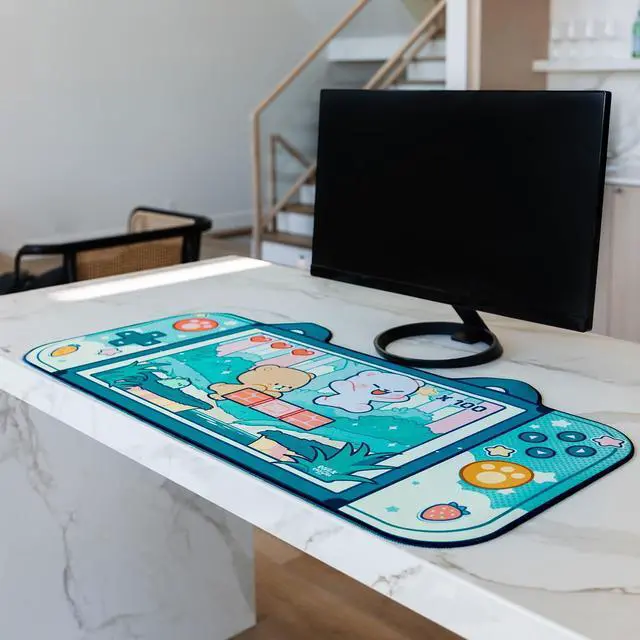 Blue Level Up Desk Mat Authentic Milkmochabear Merchandise ( 35.4" x 18.1" ) Inches Cute Extra Large Gaming Mouse Pad with Non-Slip Rubber Base for Computer Keyboard Laptop Home Office Accessories