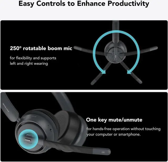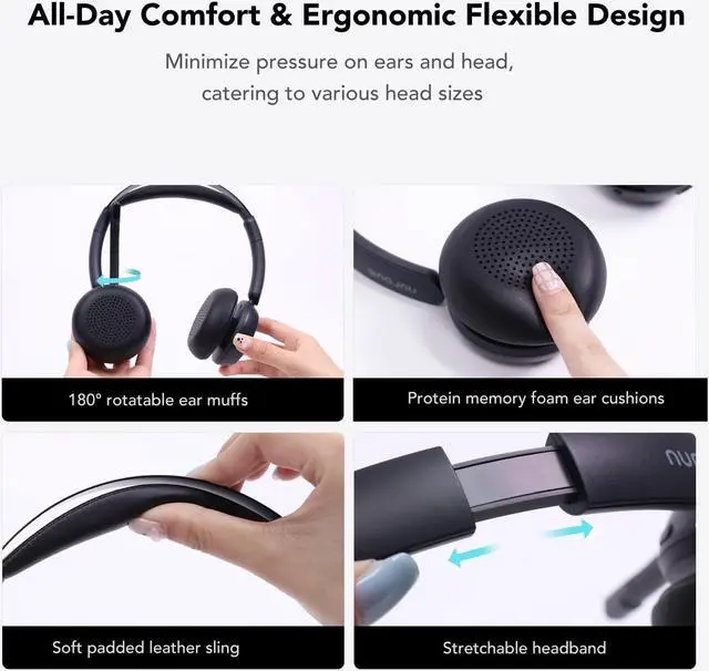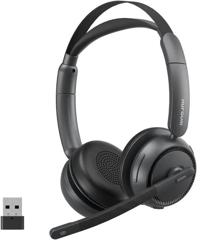 NUROUM HP31DU Wireless Headset with Mic for Work, Bluetooth Headset with Noise Cancelling Microphone, Mute Button, USB/Dongle for PC/Computer/Laptop for Zoom/Teams, Office/Call Center/Work from Home