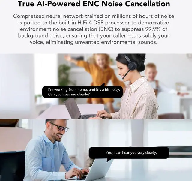 AI-Powered ENC Noise Cancellation: Immerse yourself in unparalleled call quality with the HP31DU's revolutionary AI-Powered ENC Noise Cancellation. Harnessing the HiFi4 DSP processor and a compressed neural network trained on extensive noise data, this Bluetooth headset achieves an impressive 99.9% background noise suppression. Whether in a bustling environment or a noisy setting, your caller will hear only your voice, ensuring crystal-clear communication.