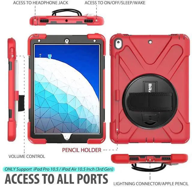 360 Rotating Stand and Hand StrapLocated on the back of iPad Pro 10.5 inch case, built-in 360 rotating kickstand and adjustable handle hand grip provide a more flexible and convenient way to use your tablet during work ,study or journey, ideal for students,teachers,engineers.