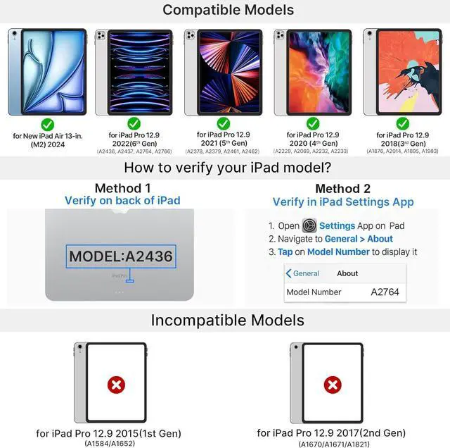 Compatible Design:The Compatible with New iPad Air 13-inch (M2, 2024),IPad Air 13-inch(M3, 2025), iPad Pro 12.9 2022 6th Gen (A2436, A2437, A2764, A2766), Pro 12.9 2021 5th Gen (A2378, A2379, A2461, A2462), iPad 12.9 2020 4th Gen (A2229, A2069, A2232, A2233), iPad12.9 2018 3rd Gen (A1876, A2014, A1895, A1983).