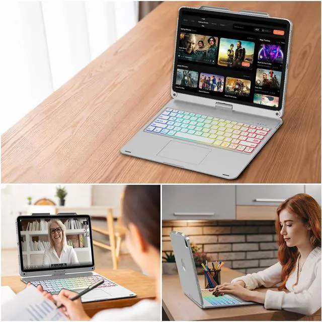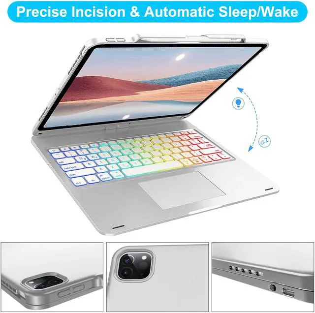 Keyboard Case for iPad Air 13 inch (M2 2024/M3 2025) & iPad Pro 12.9 6th/5th/4th/3rd Gen, Multi-Touch Trackpad, 360° Rotarable, Wireless Bluetooth Keyboard, 7 Colors Backlit, Support Charging Silver