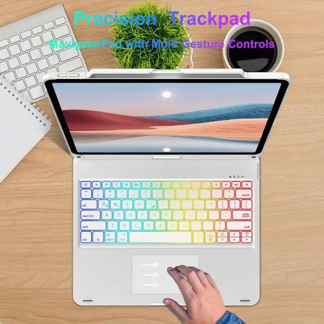iPad Air 13 RGB Backlit Keyboard:The iPad Air 13 keyboard case has 7 backlight colors and 3 brightness mode levels, breathing frequency adjustment, stable rainbow light and circular breathing rainbow to find your faorite color. The use of RGB light source makes the keyboard's colors more vibrant and full.