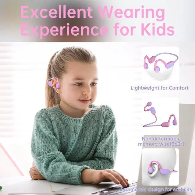 [Ultra-Safe Design]: Our headphones for kids feature a new generation open-ear design - Air Conduction Technology. They can directional deliver premium audio without muffling kids' ears which can ensure your kids can hear surrounding noise. This special design ensure your kids enjoy unique listening experience while studying at home, school, train, all while avoid some dangerous situations from happening.