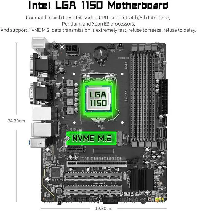 LGA 1150 Socket Motherboard: This gaming motherboard supports 4th/5th Gen Intel Core i7/i5/i3/Pentium/Celeron/E3 series processor with LGA 1150 CPU socket. (e.g. core i3 4130, i5 4460, i5-4570, i5 4590, etc.)