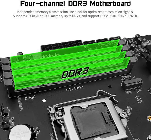 Maximum Memory 32GB: The Intel m-atx motherboard supports Dual Channel Non-ECC DDR3, 4 DIMMs, support 1333/1600/1866/2133MHz