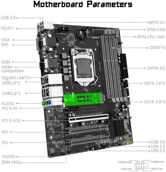 Best Gaming Connectivity: The Intel LGA 1150 motherboard for Intel i3 i5 i7 supports HDMI-compatible and DVI, VGA, featuring M. 2 slots (NVMe SSD), PCIe 3.0 X16, USB 3.0, SATA 3.0, and 2 gigabit network interfaces, bringing an extremely fast and smooth online gaming network
