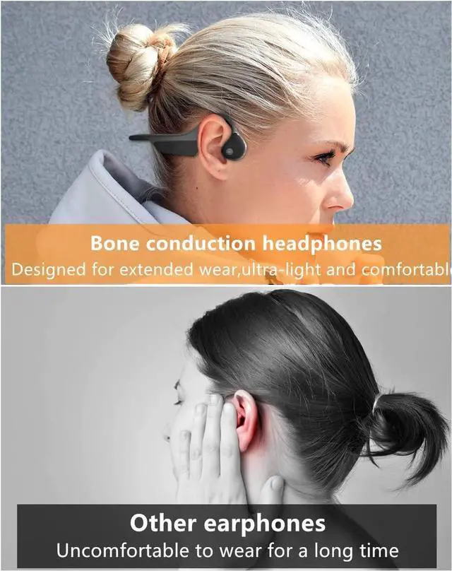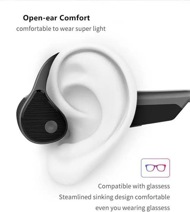 Bone conductionUnlike traditional wireless headphones, bone conduction headphones do not need to be placed in the ear canal. Even if you listen to music all day, your ears won't feel sore, and you can prevent damage to your ear canal from using the headphones for a long time.