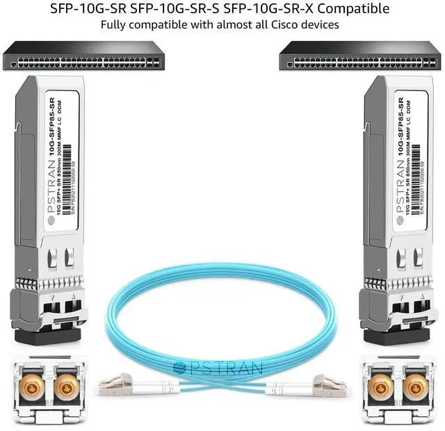 the 10GBASE-SR SFP+ Optical Transceiver Module supports up to 400m link lengths over OM4 MMF (300m over OM3 MMF) via an LC duplex connector. Max. Power Consumption 1W Allowing for Prolonged Service Life, Commercial Temperature Range 0 to 70°C (32 to 158°F)
