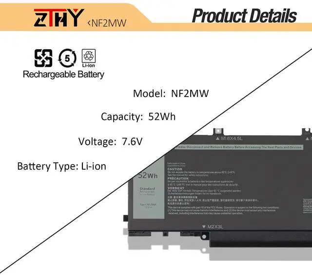 ZTHY NF2MW Laptop Battery Replacement for Dell Latitude 7400 2-in-1 Latitude 9410 2-in-1 Series Notebook P110G P110G001 7146W 085XM8 08W3YY 0C76H7 C76H7 0G8F6M 7.6V 52Wh 6500mAh 4-Cell