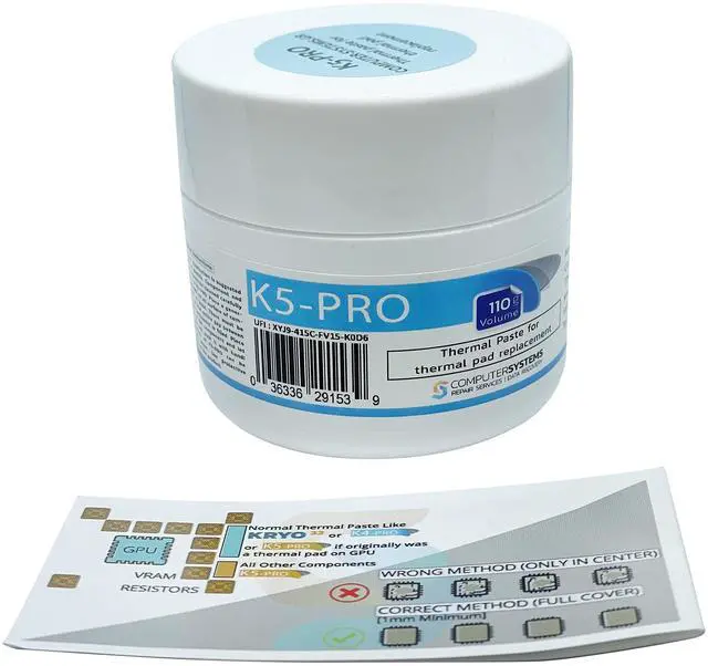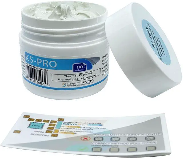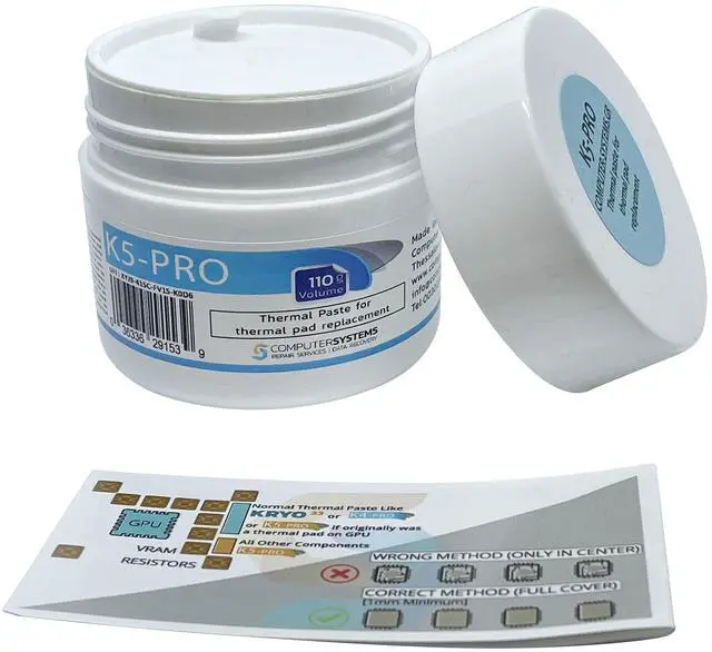 K5-PRO is applied very easily directly on the component and has no electrical conductivity. Operational temperature -90 to 250 degrees (Celsius). Compatible with many gaming laptops, game consoles, high end video boards, crypto mining etc.