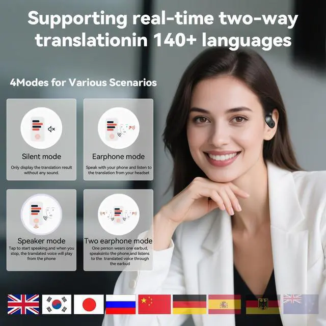 Immersive Sound Quality: The ai translator earbuds features HD sound quality, providing clear and pure sound whether you are listening to music, taking a call or translating language.language translator earbuds