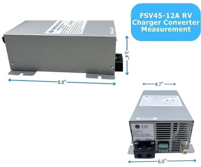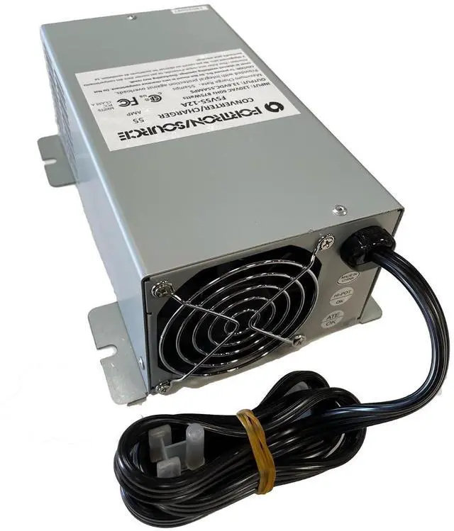 The Fortron/Source 45 Amp Recreational Vehicle Power Supply provides consistent and reliable power to your RV. INPUT CHARACTERISTICS AC Input Voltage Rating 120 Vac Range 105-130 Vac AC Input Current See table above Inrush Current <75A @120Vac Power Factor N/A OUTPUT CHARACTERISTICS Output Voltage 13.75 Vdc Output Voltage Range 13.2 - 14.4 Vdc Output Power Efficiency Typical values 80% @ 120 Vac Hold-Up Time 20ms @120Vac Startup Time 1000mS Max Load Regulation 1%Vdc Line Regulation 0.5 %Vdc Three Charging BULK, NORMAL, FLOAT Over Load Protection 105-120%, Auto resetting Short Circuit Protection Continuous, Auto resetting Over Voltage Protection 115-125%, Auto resetting Overtemp