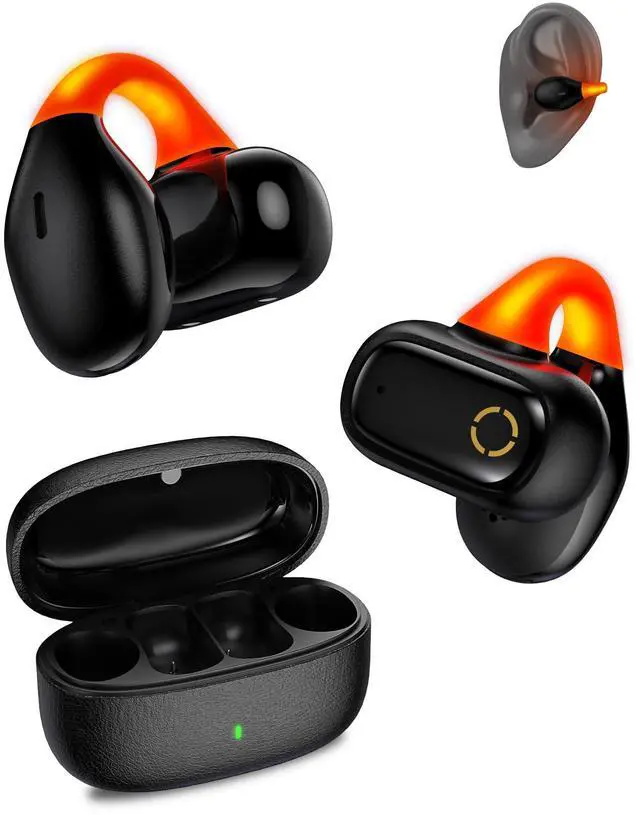 Jiunai Open Ear Earbuds Wireless Bluetooth Headphones Bone Conduction Clip On Earbud Bluetooth 5.3 Small Ear Fit Over The Ear Headphone Sweatproof Flash Night Light Open Ear Headphones for Sports