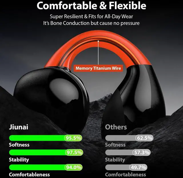 Open-Ear Comfort for All-Day Wear: Bone conduction technology on Bluetooth Headphones leave ear canals 100% openno pressure or fatigue during marathon study sessions or 5-hour hikes. Ultra-light titanium frame disappears on your head