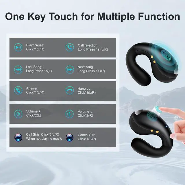 Born for Active Lifestyles & Secure Fit--This open clip wireless earbuds boast an ergonomic design with a golden point, ensuring a comofort fit and preventing them from falling off during exercise. the earbuds also feature adjustable soft ear hooks, easily customizable to your preferred position, catering to various ear shapes. Despite this, they remain lightweight and very comfortable for Exercise lovers and Glasses Wearers.