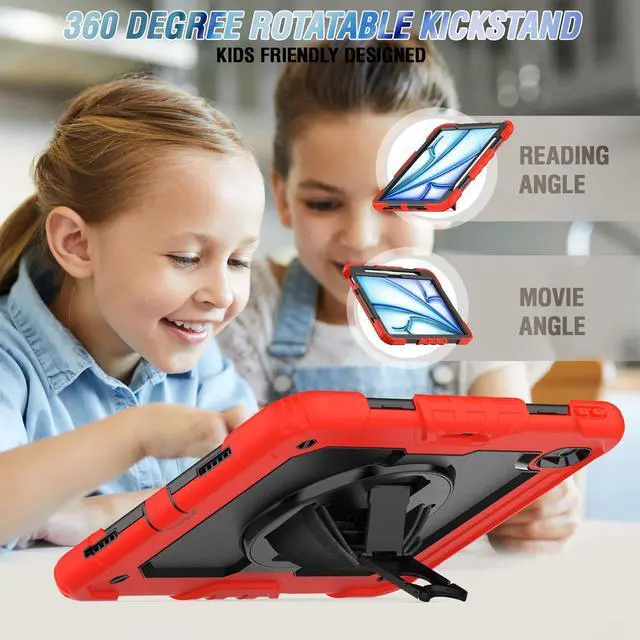 Built-in 360 Rotatable Kickstand and Hand Strap : 360-degree rotating swivel stand supports position of 3 angles(Vertical, Horizontal, and Halfway between), ideal for watching videos, conferences and travelling. Soft rotating handle strap prevents falling of iPad Air 11 6th tablet, featuring convenient use for teachers, students, waiters, doctors, nurses and conference presenters.