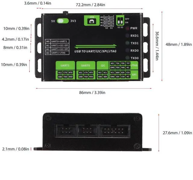 Interface: 12PIN Anti Reverse Connector (The Last 8 Pins are JTAG)