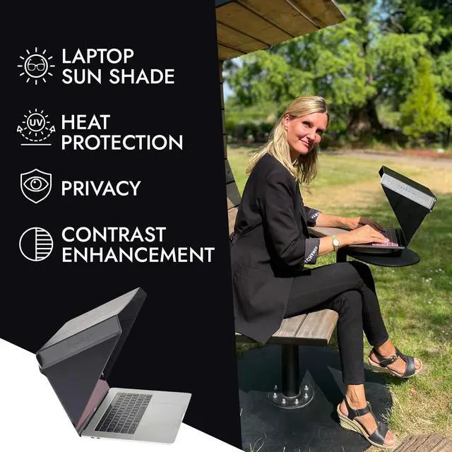 Thinnest and Lightest Screen Shade: Introducing the Slim Hood, the thinnest, lightest, and simplest screen shade hood on the market. This portable laptop hood sun shade blocks glare and enhances visibility, making it perfect for working outdoors, at the pool, or on the beach. The first Screen Shade products on the market Patent no. D790551.