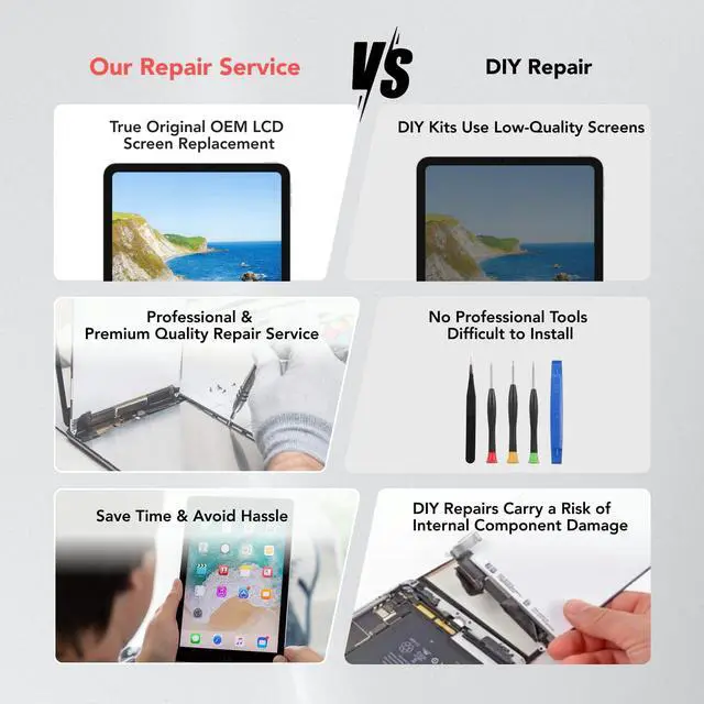 How Repair Service Work STEP 1: Mail YOUR DEVICE to us. Including: Order number, Phone number and Full address. Then, apply the prepaid SHIPPING LABLE. STEP 2: Provide us the TRACKING NUMBER so we can get it in time. STEP 3: Wait patiently. Your Screen Repair will be finished by the 2-3 business day after we receive it. Afterwards it will be returned to you. Additionally, we offer a 30-day Coverage for non-artificial damage and non-water damage on screens we have repaired.