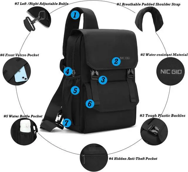 Material: The messenger sling bag is made of water-resistant nylon material, smooth zippers, and an inner lining to make this sling backpack good-looking and useful.