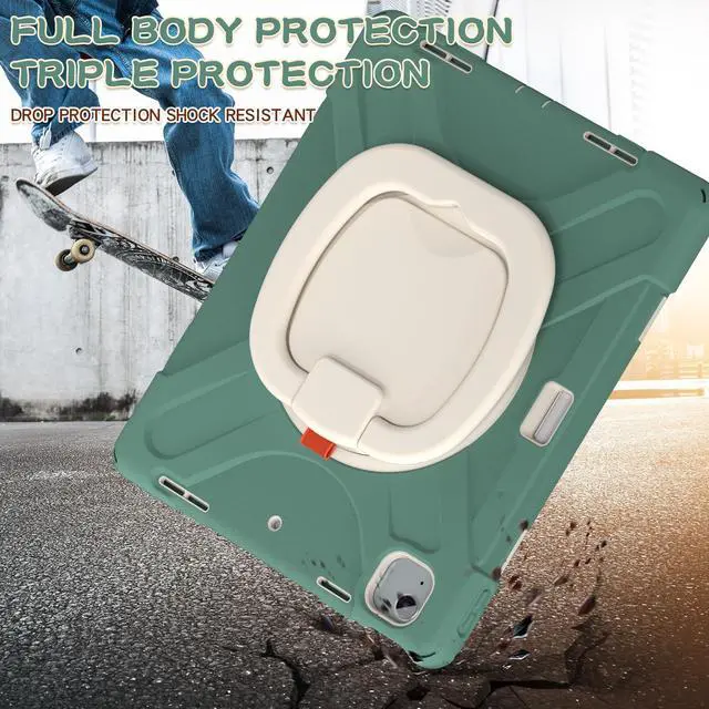 MEEgoodo Case for iPad Air 13 inch 2025 (M3) /2024 (M2) & iPad Pro 12.9 Case 6th/5th/4th/3rd Generation 2022 2021 2020 2018, Tablet Cover with Pencil Holder/Rotating Stand/Shoulder Strap, Emerald Green