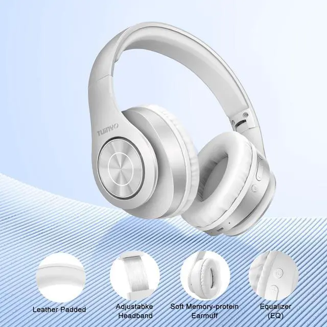 TUINYO Bluetooth Headphones Wireless, Over Ear Stereo Wireless Headset 40H Playtime with deep bass, Soft Memory-Protein Earmuffs, Built-in Mic Wired Mode PC/Cell Phones/TV-White