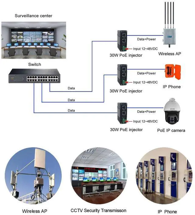 EK-001-30W POE adapter provides an integrated power solution with 12~48VDC wide range voltage input.