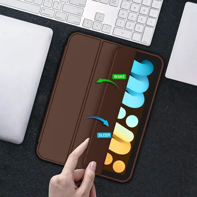 iMieet iPad Mini 7 Case 2024 (A17 Pro), iPad Mini 6 Case ( 8.3 -Inch, 2021 Model), iPad Mini 7th/6th Generation Case with Pencil Holder, Trifold Stand Smart Case with Soft TPU Back, Chocolate