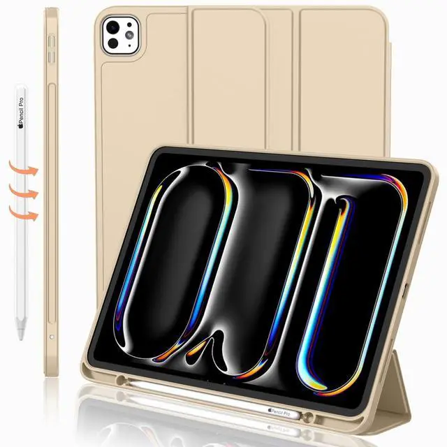[Supports Pencil Pro and Pencil (USB-C)] This iPad Pro case fully supports Pencil Pro and Pencil (USB-C) with a recessed side groove for magnetic charging and a magnetic clasp to keep your Pencil secure