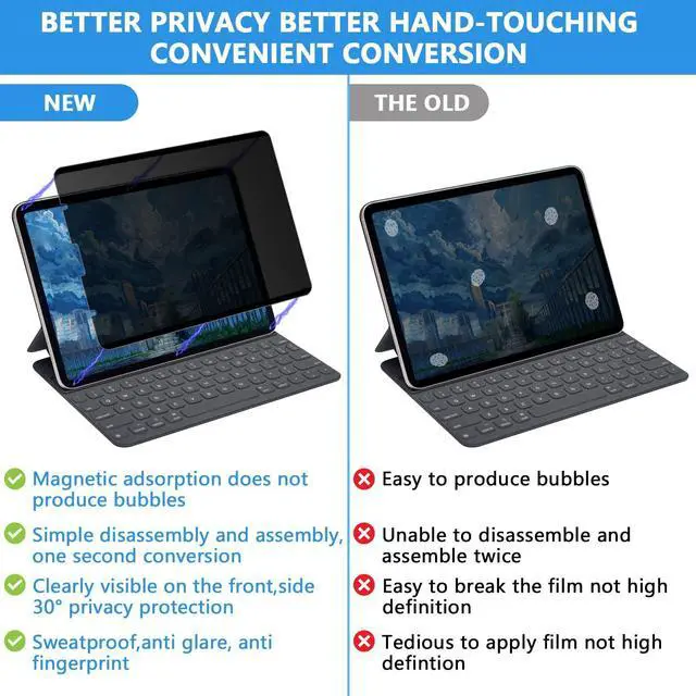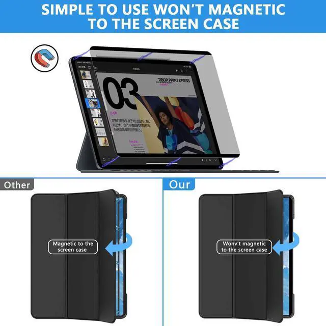 Easy Magnetic Installation: In order to solve the pain point that the traditional protective film is difficult to install, Halloive have innovated the installation method of ipad 12.9 privacy screen protector to make it easier and faster to install, installed a super strong magnetic strip on the top and bottom.