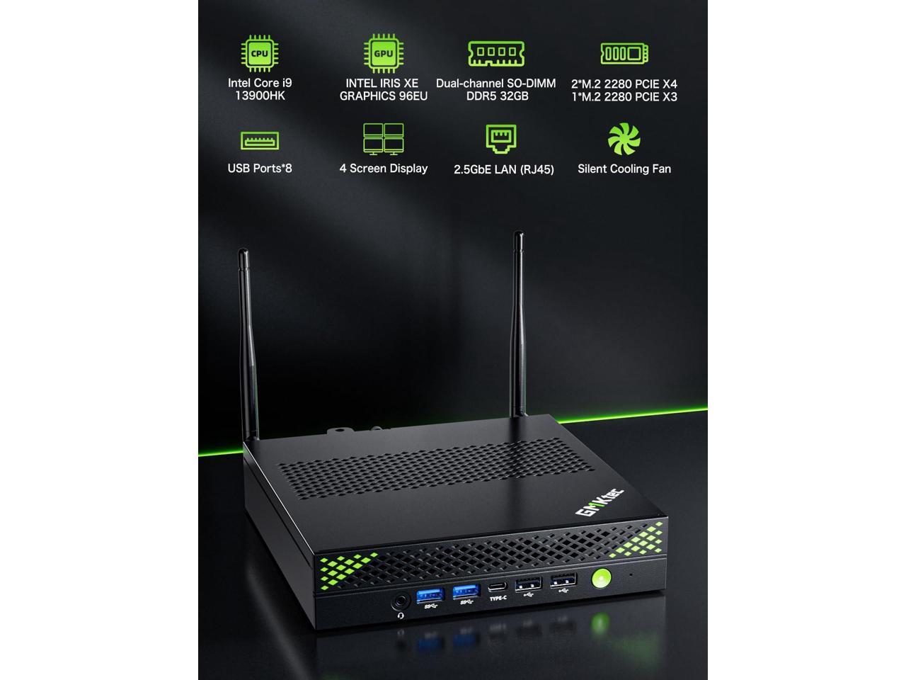 GMKtec Mini PC Intel Core i9 13900HK(Turbo 5.4GHz) 32GB DDR5 2TB SSD NVMe Mini Computers Workstation Quad 8K Display, 8XUSB Ports/COM/HDMI/DP 2.5G LAN WiFi6 & BT 5.2 Office Business K10