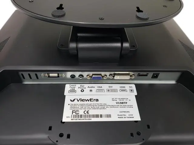 ViewEra V198TP Active TFT LCD 19" Touchscreen Monitor, Black; 1280 x 1024 Max Resolution; VGA, SVGA, and XGA Support; 5-wire Resistive Type Touch Sensor; Adjustable Stand; Built-in Speakers
