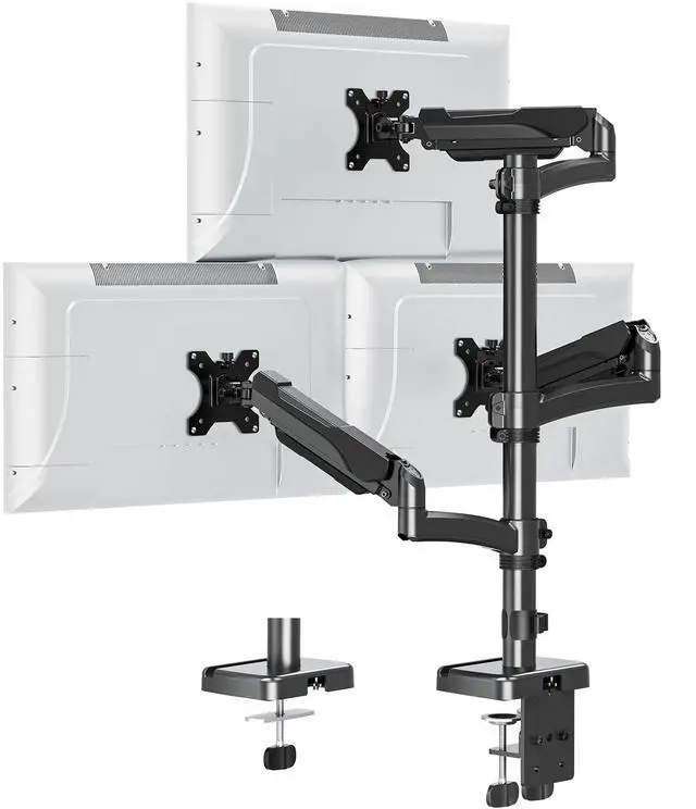 Ergonomic Design for All-Day Comfort - The adjustable triple monitor mount tilt your screen from +90° to -90°, swivel 180°, and rotate 360° from landscape to portrait. This full motion monitor desk mount also can be positioned or stacked in many different ways. The monitor gas spring arm help to customize your screen angle effortlessly, reducing neck and eye strain.