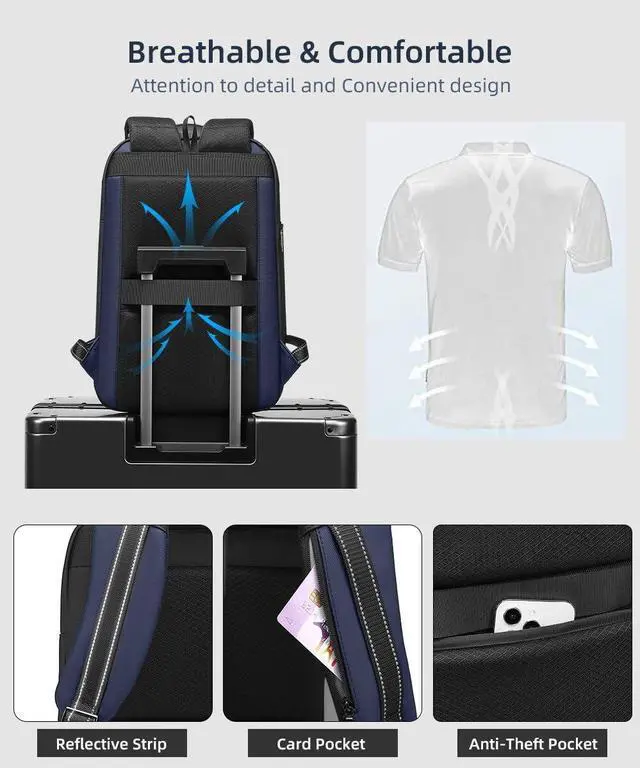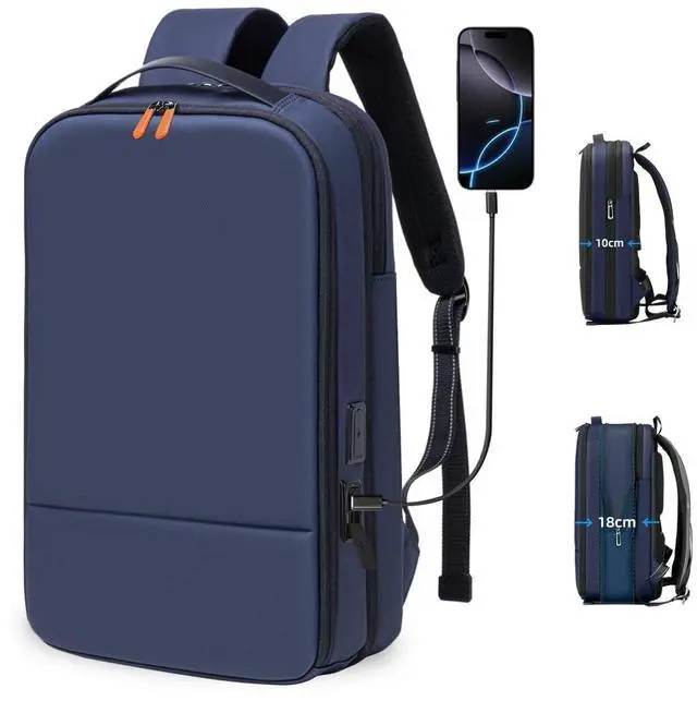 GYakeog Business Backpack for Men 15.6 inch Expandable Slim Laptop Backpack With USB Charger Port Waterproof Anti-Theft Professional Work Computer Bag Hard Shell Backpack-Blue