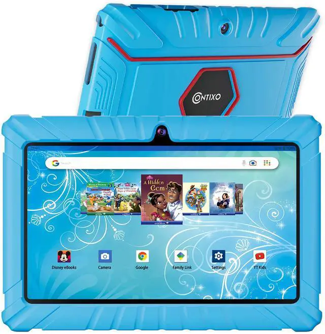 Contixo 7 Kids Tablet Bundle - Learning Tablets and Headphones for Kids, Includes 50+ Disney Storybooks (Value $200), 7-inch HD, Ages 3-7, Parental Control, Android 11, 32GB, WiFi - Blue (Boys Gift)