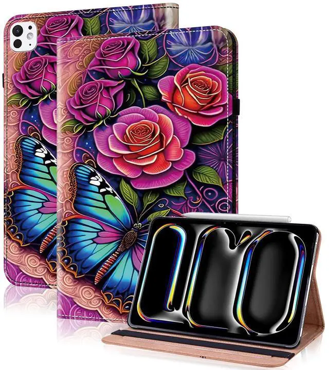 TUOLISG Case for iPad Pro 13 inch Case (M4) 2024, Premium Leather Folio Stand Cover with Auto Wake/Sleep, Pencil Holder,Hand Strap and Card Slots for iPad Pro 13 2024 (7th Gen) - Colorful Butterfly