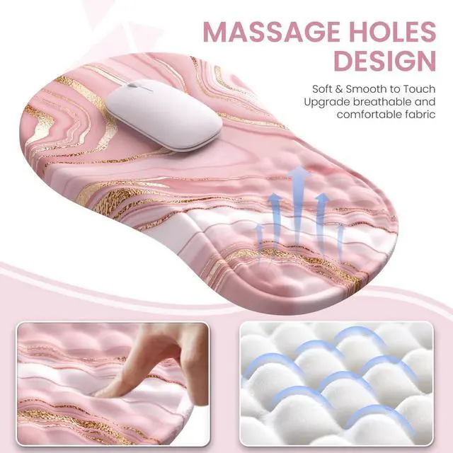 Ergonomic Design: The mouse wrist rest adopts 100% memory foam Ergonomic mousepad with wrist rest slope keep wrist maintaining in proper alignment The arm can be fully supported on the arched part Relieve hand pressure and typing carpal tunnel pain