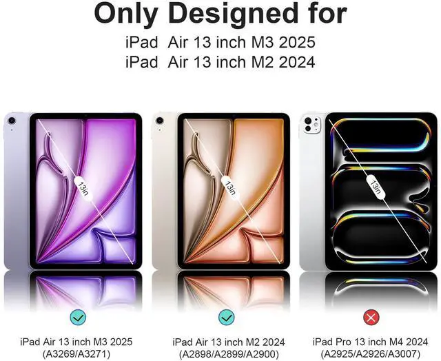 Compatible ModelOnly Designed for iPad Air 13 inch M3/M2 2025/2024 (Model Number: A3269/A3271/A2898/A2899/A2900). Please verify the model number on the back of your iPad for compatibility.Note: It is Not compatible with any other devices.