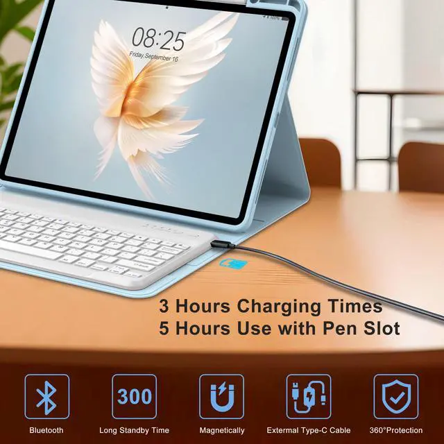 Full Protection & Pen HolderThe iPad Pro 13 inch case keyboard provides comprehensive 360° protection for your tablet, safeguarding it from scratches, bumps, and accidental drops with its non-slip design. Precisely designed