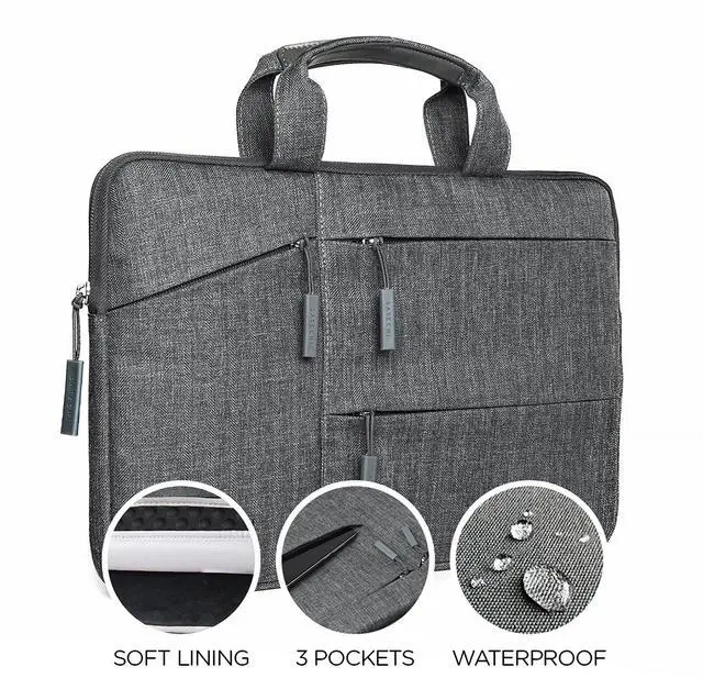 Clean, minimalist aesthetic meets multi-functional features. Its sleek gray-toned design complements most laptops, while use the outside side pockets to safely store your extra accessories and equipment.