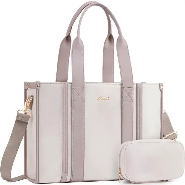 LOVEVOOK laptop bag for women 15.6 inch large Lightweight canvas work tote bags with Clutch Purse water resistant computer bags for laptops for women Business Office Travel college Casual, Nude pink