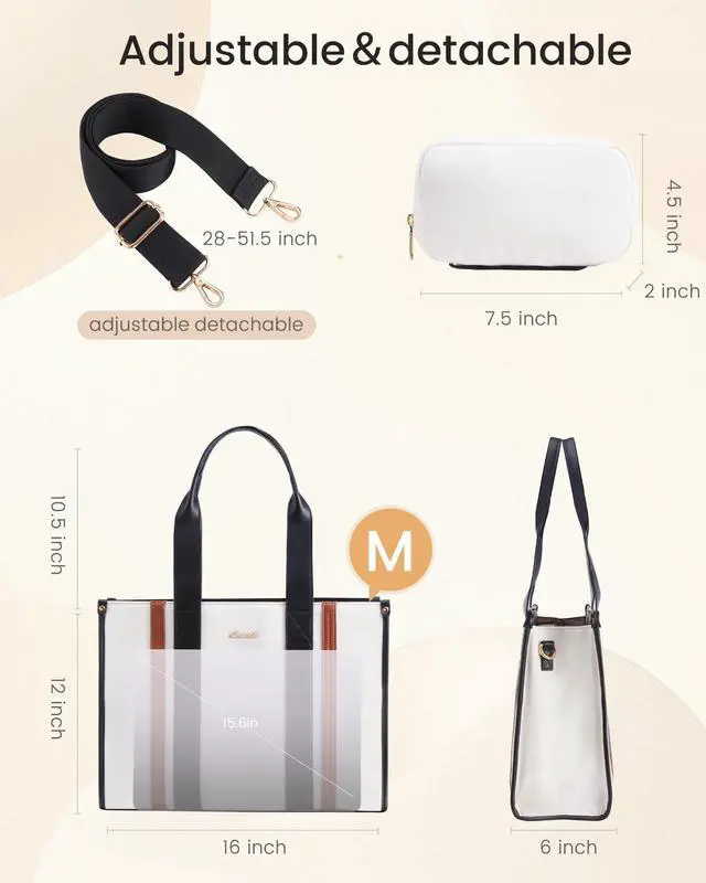 laptop protectionClutch bagThe padded laptop slot keeps laptops from getting damaged. This laptop tote bag for women included small pouch is perfect for all those daily essentials.clutch bag 7.5" x 2" x 4.5"(L*W*H).
