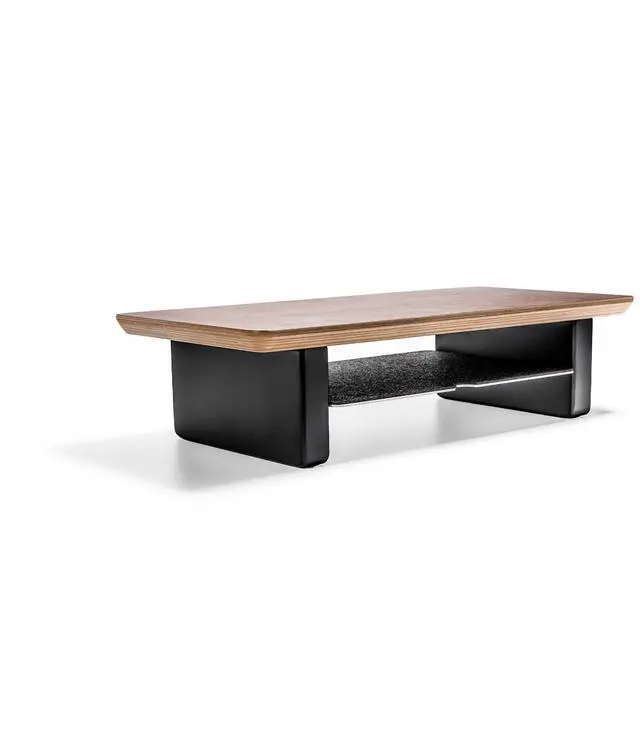 PREMIUM TACTILE MATERIALS - Crafted from 15-ply Walnut Hardwood and industrial-grade aluminium, this monitor stand desk shelf boasts a sturdy construction that can comfortably stand 2 large heavy monitors